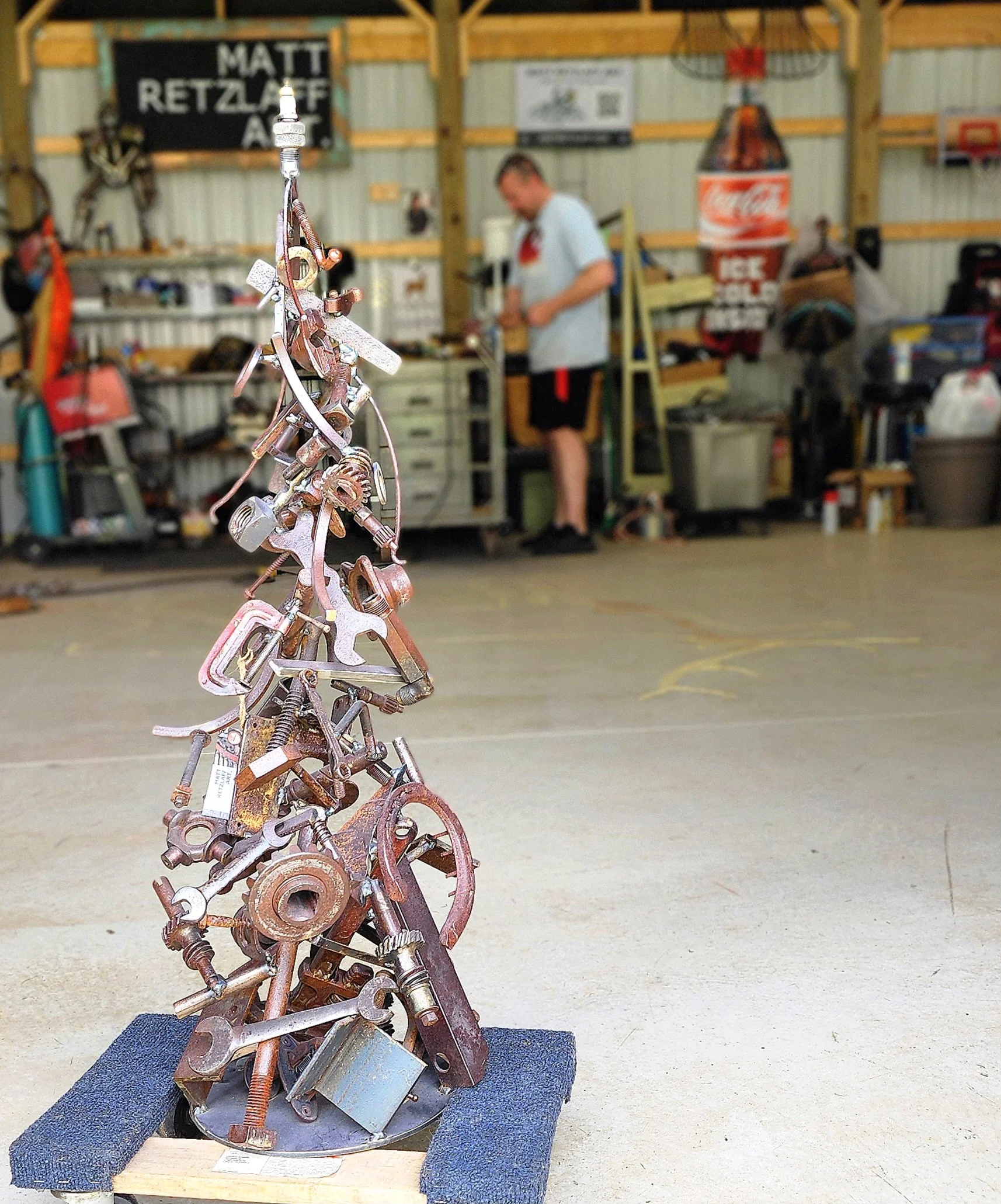 Meet “Crane”, Matt’s newest (6") Mini Chainsaw created from 100% recycled metals… including a REAL chainsaw chain, bar, throttle and safety guard (of course). You will also find bolts, nails, washers, and other chainsaw & misc metal bits. Perfect gift for the man who has everything.